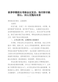 秋季学期校长考核会议发言:恪尽职守践初心,问心无愧向未来