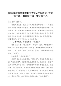 2025年秋季学期教职工大会,校长讲话:守好每一课・聚好每一班・带好每一人