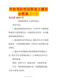 学校预防校园欺凌主题班会教案:校园防欺凌 友爱伴成长