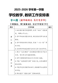 2025-2026秋季学年第一学期学校教学教研工作安排表:十一月(霜华映砺志 笃行竞芳华)
