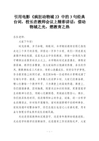 引用电影《疯狂动物城2》中的3句经典台词,校长在教师会议上精彩讲话:借动物城之光,燃教育之热