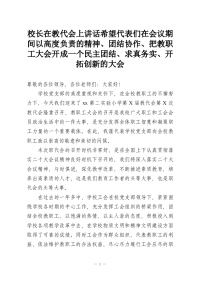 校长在教代会上讲话希望代表们在会议期间以高度负责的精神、团结协作、把教职工大会开成一个民主团结、求真务实、开拓创新的大会