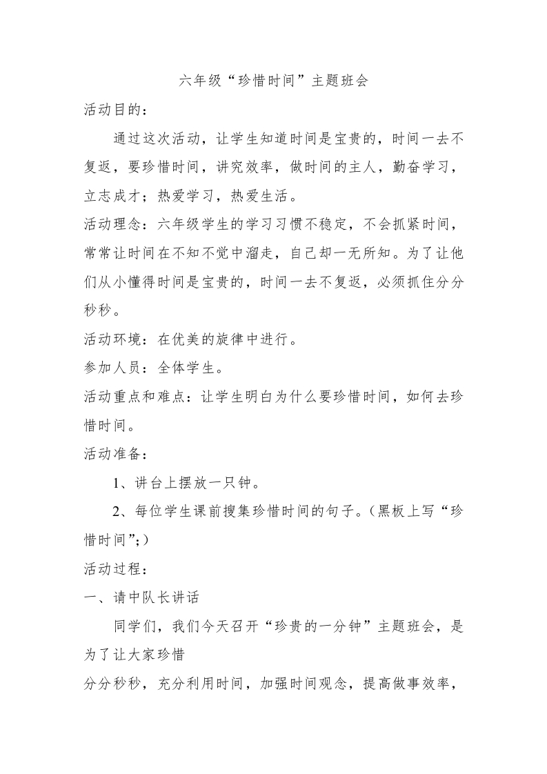 珍惜时间主题班会