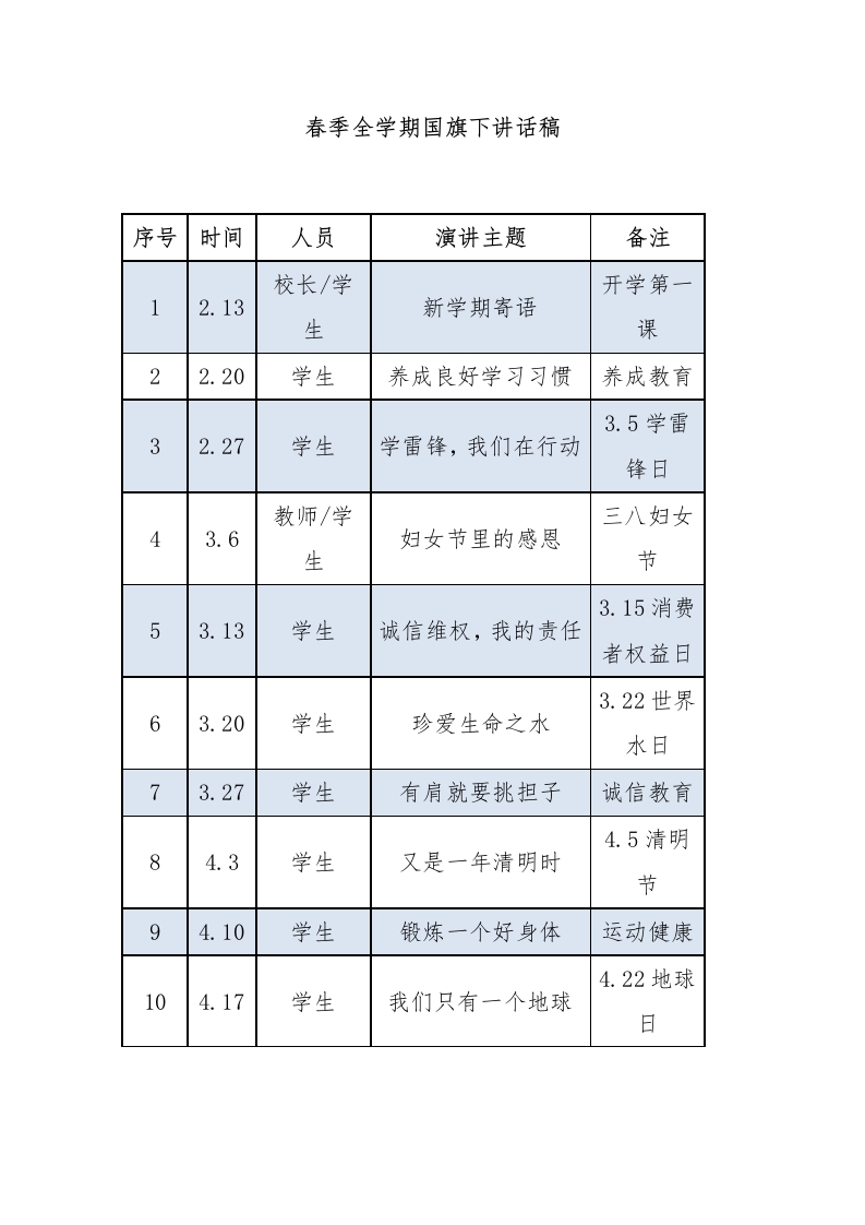首页德育资料专题讲话春季全学期国旗下讲话稿