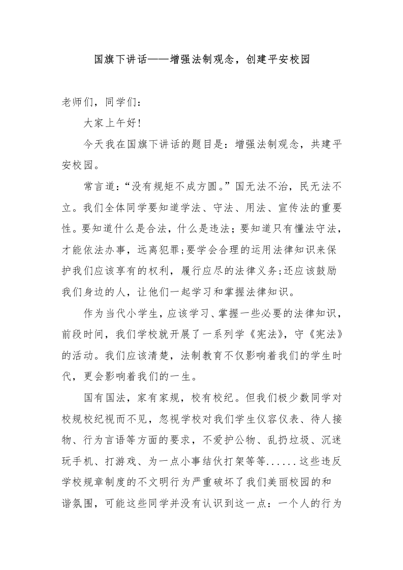 首页德育资料专题讲话国旗下讲话-增强法制观念-创建平安校园