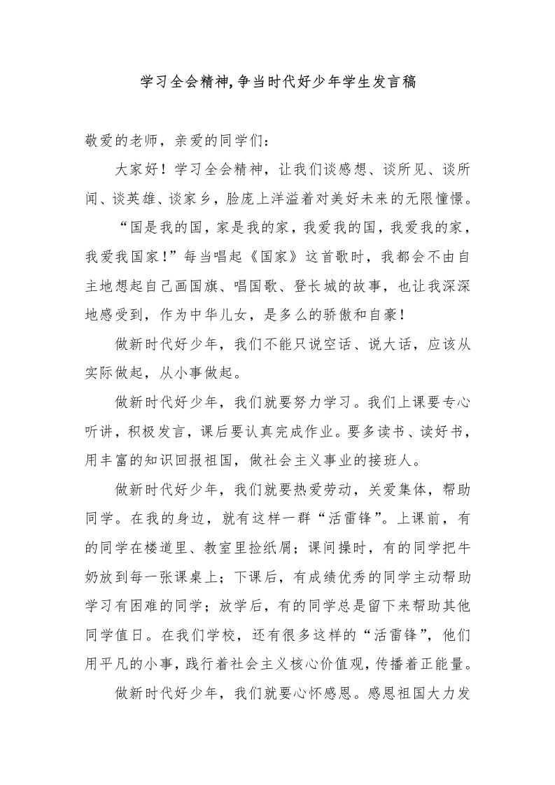 学习全会精神-争当时代好少年学生。发生亮剑发言稿