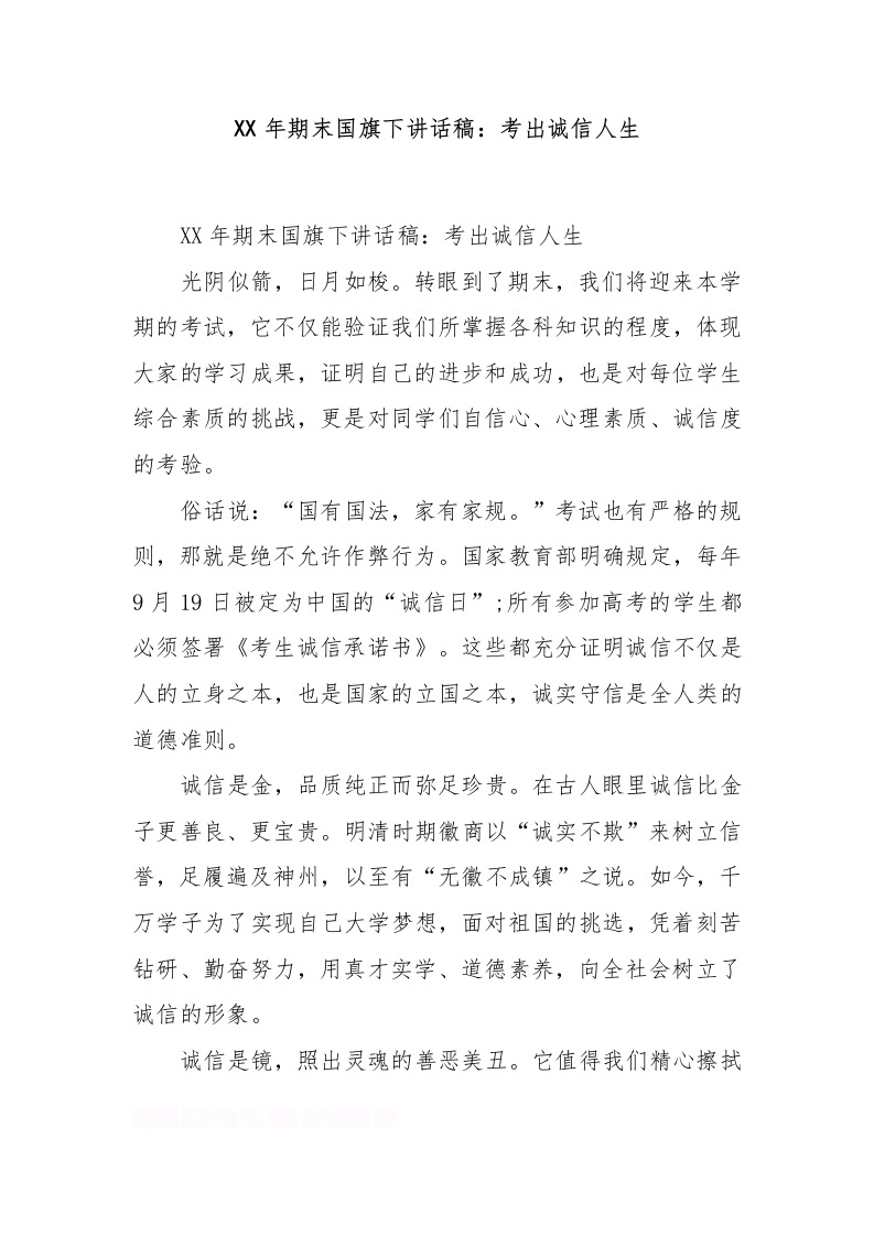 XX年期末国旗下讲话稿:考出诚信人生_1[推荐]