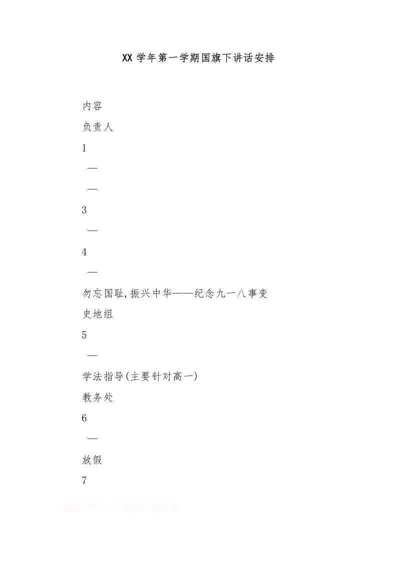 XX学年第一学期国旗下讲话安排[推荐]