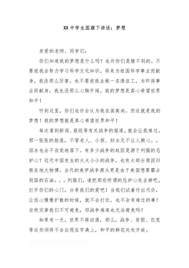 首页国旗下讲话综合讲话XX中学生国旗下讲话:梦想[推荐]