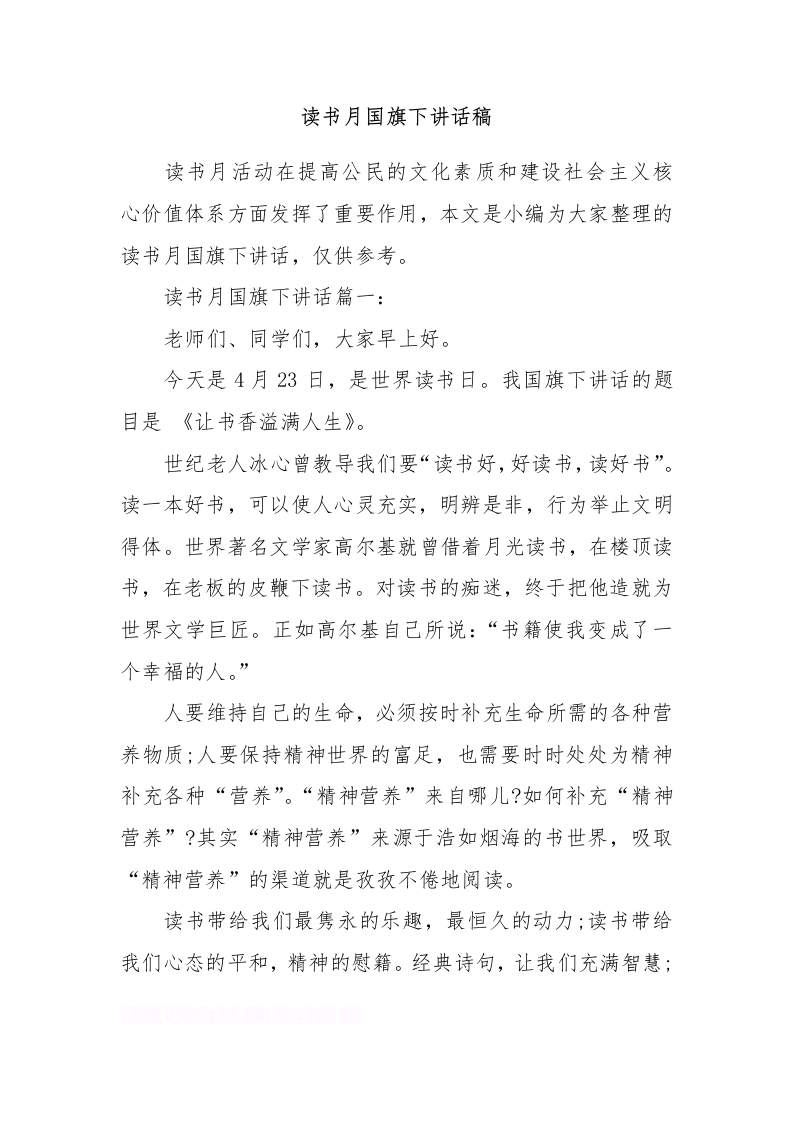 首页国旗下讲话综合讲话读书月国旗下讲话稿[推荐]