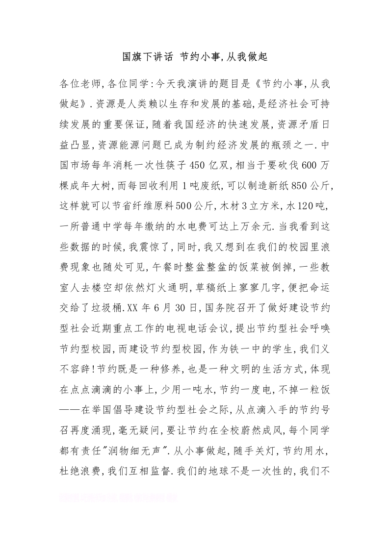 首页国旗下讲话综合讲话国旗下讲话 节约小事,从我做起[推荐]