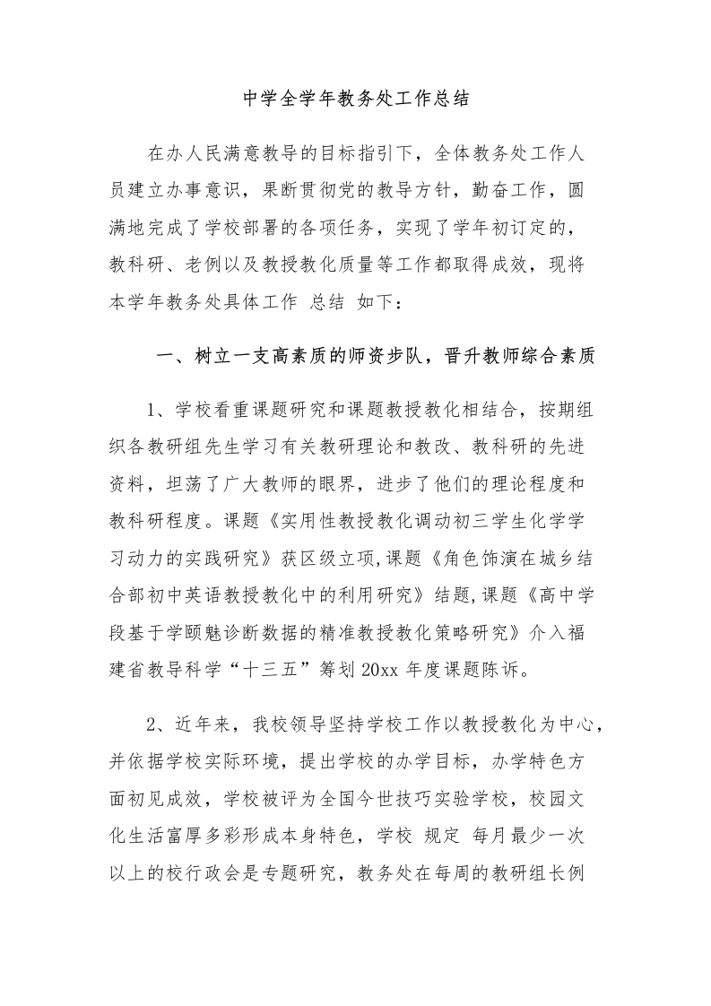 中学全学年教务处工作总结