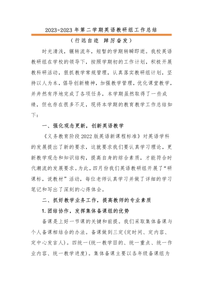 2022-2023年第二学期英语教研组工作总结