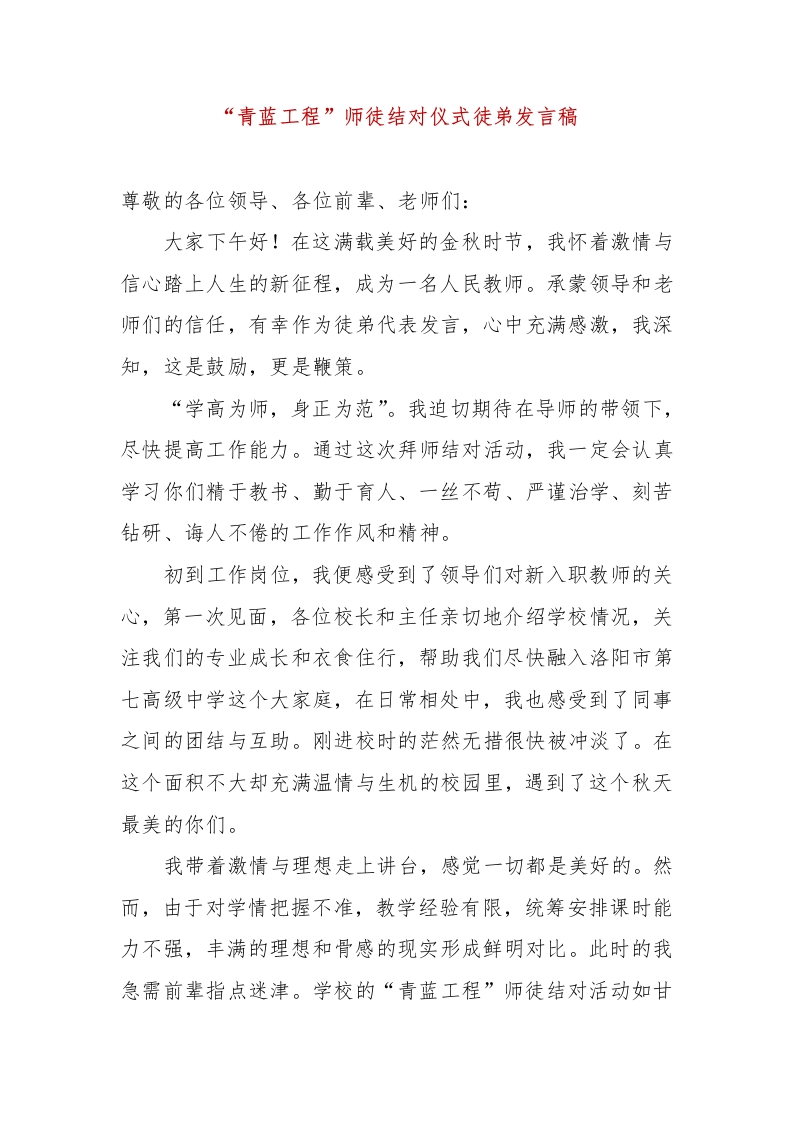 首页教研资料青蓝工程“青蓝工程”师徒结对仪式徒弟发言稿