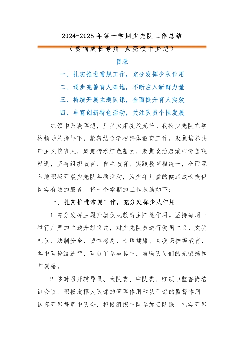 首页少队资料计划总结2024-2025年第一学期少先队工作总结2