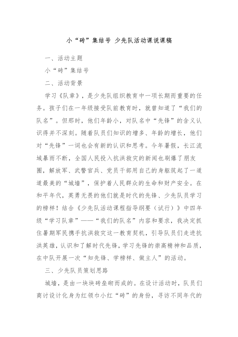 首页少队资料演讲致辞23小“砖”集结号 -说课稿