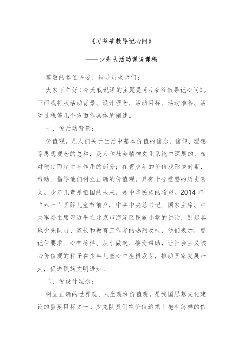 首页少队资料演讲致辞50习爷爷教导记心间 说课稿
