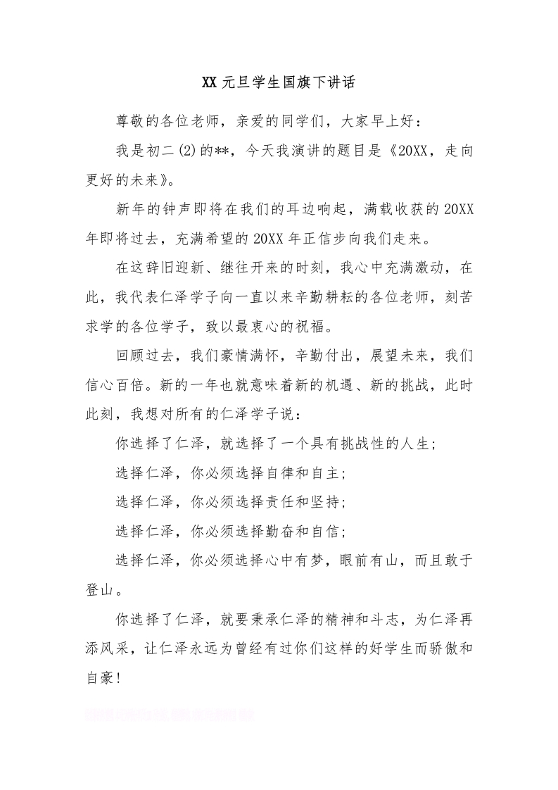 首页主题节日重要节日XX元旦学生国旗下讲话[推荐]