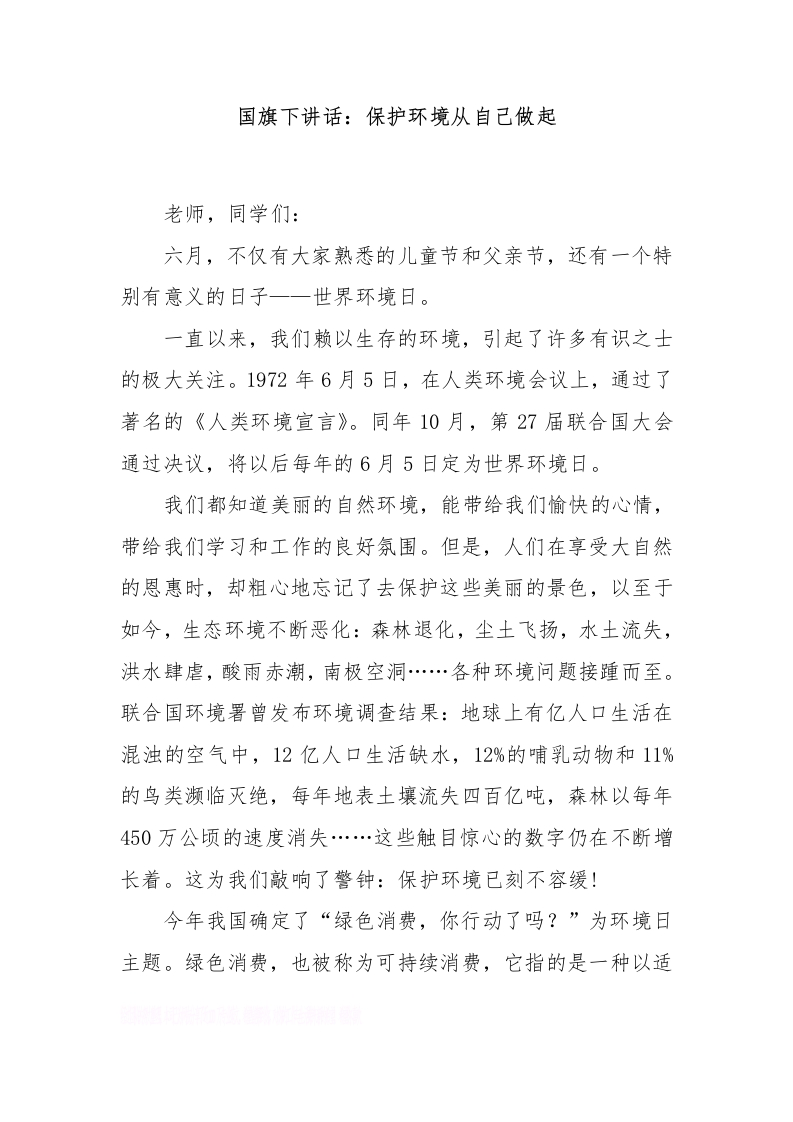 首页主题节日重要节日国旗下讲话:保护环境从自己做起[推荐]