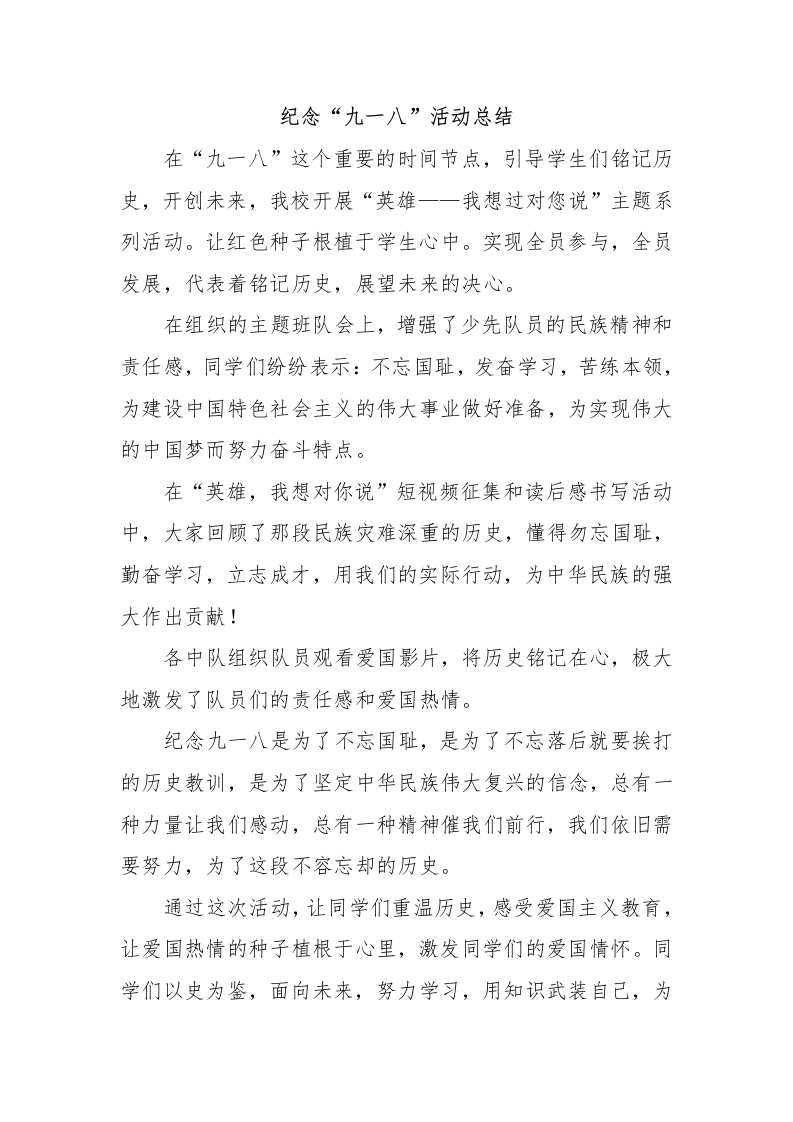 勿忘国耻 振兴中华——“九一八”活动总结