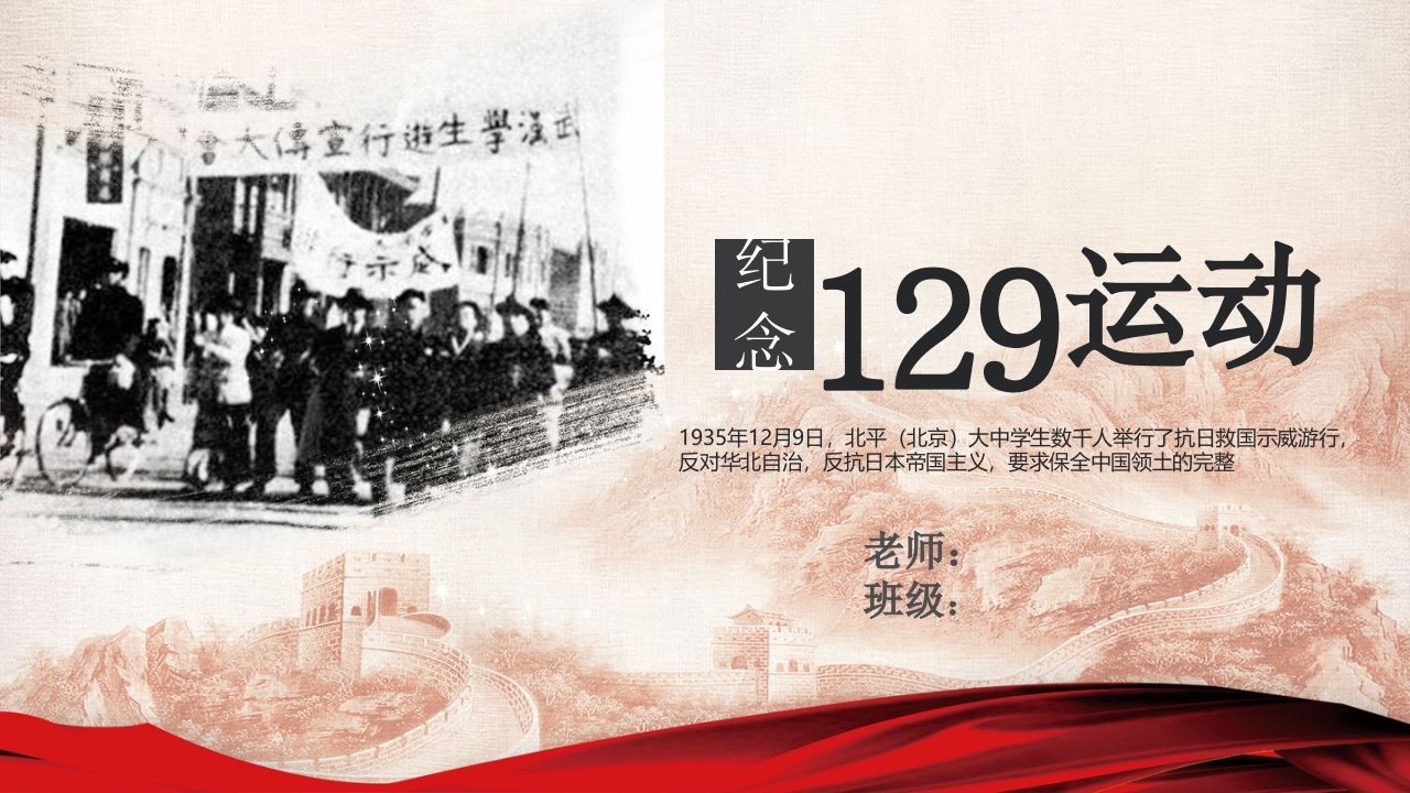 首页主题节日重要节日纪念“一二•九”主题班会PPT课件