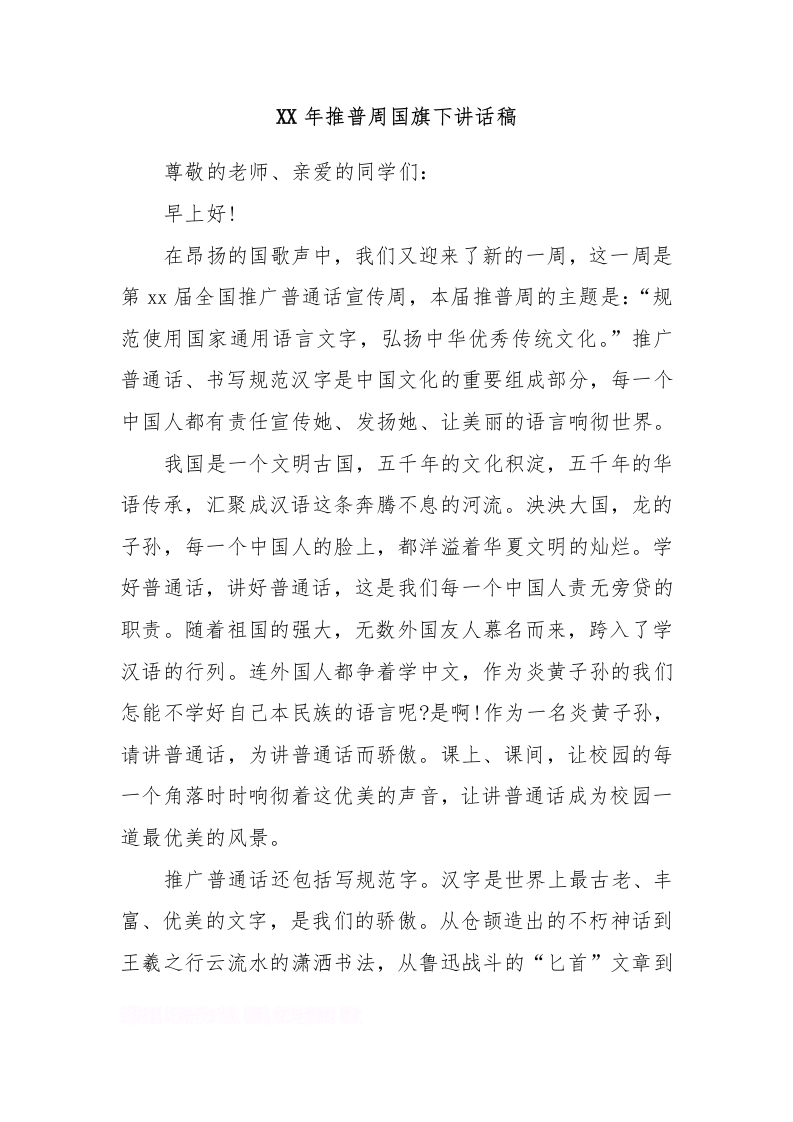 首页主题节日主题活动XX年推普周国旗下讲话稿[推荐]