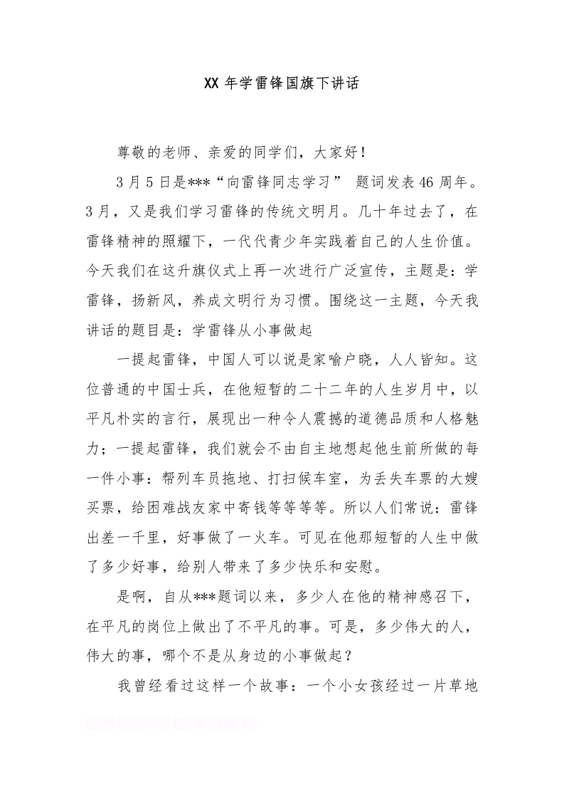 XX年学雷锋国旗下讲话[推荐]