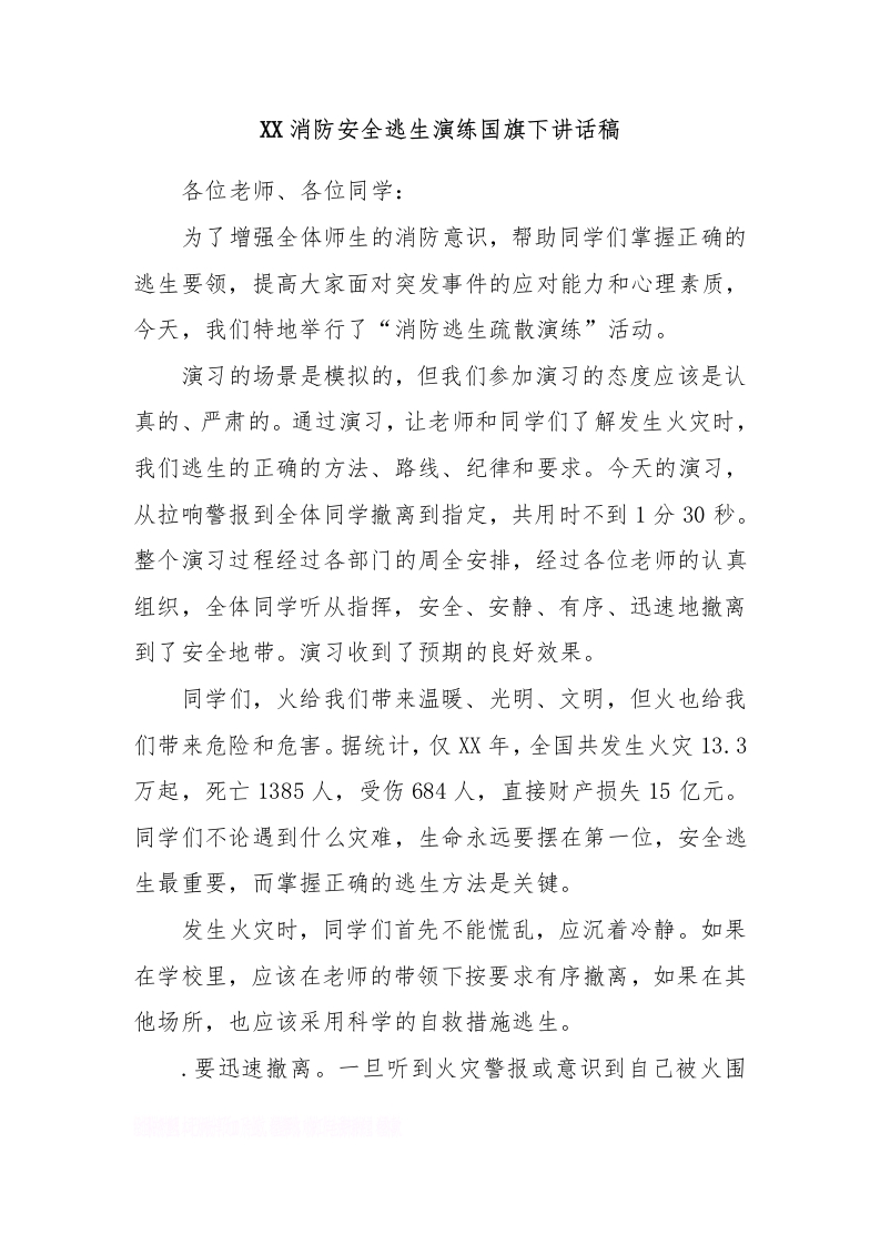 XX消防安全逃生演练国旗下讲话稿[推荐]