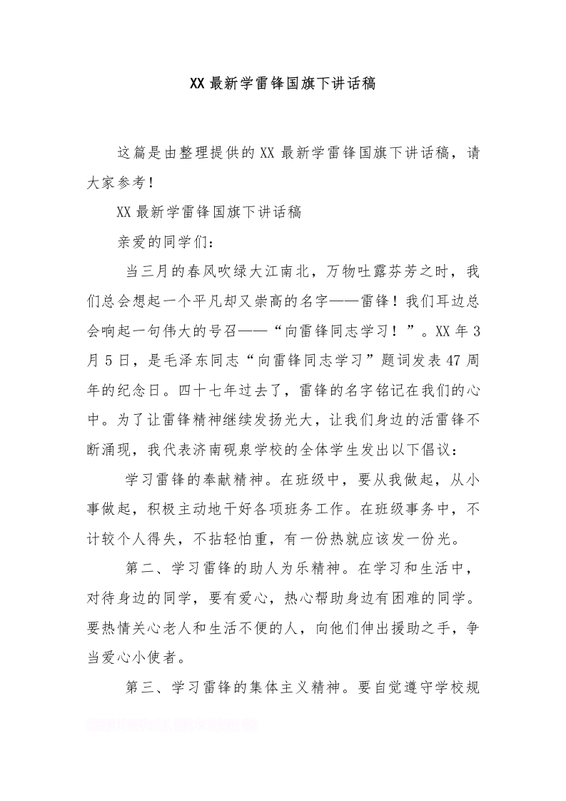 首页主题节日主题活动XX最新学雷锋国旗下讲话稿[推荐]