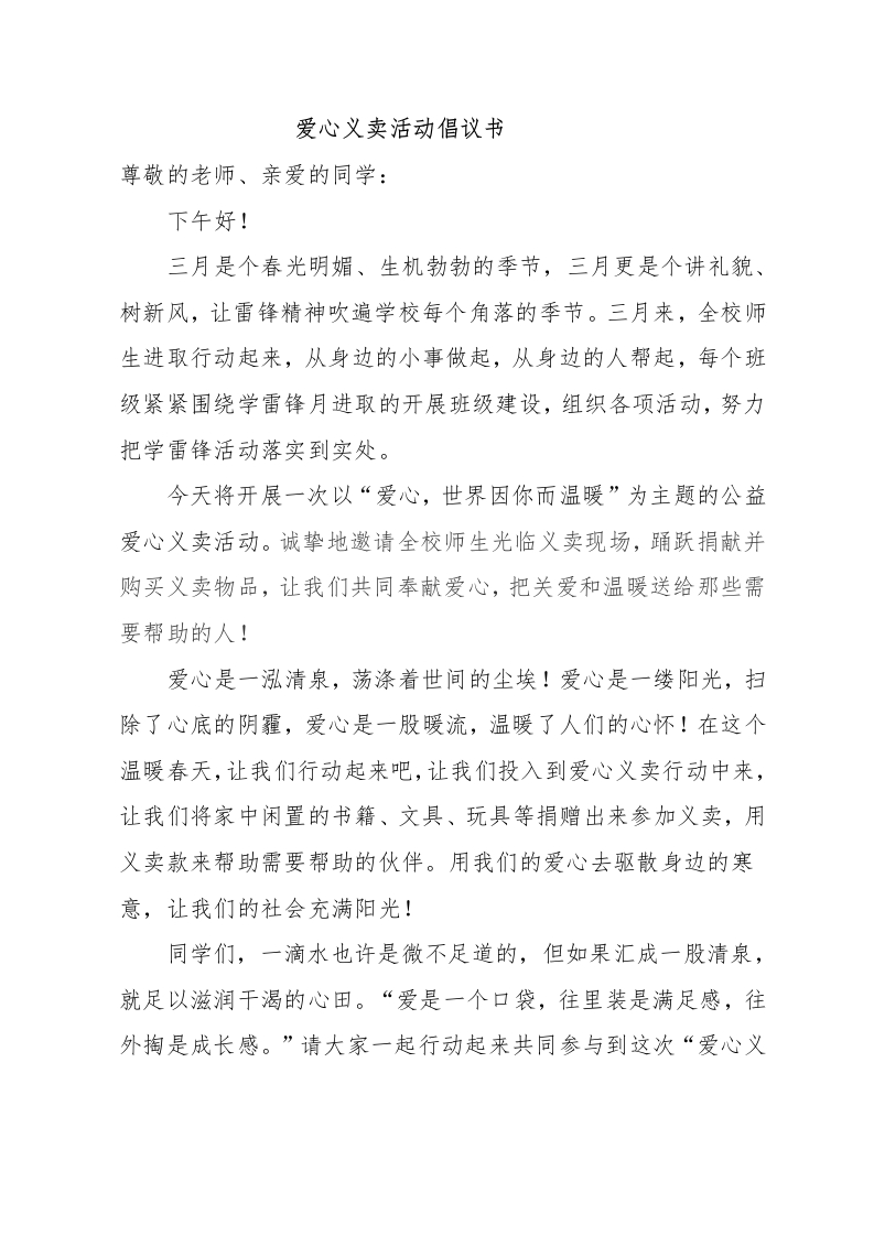 爱心义卖活动倡议书