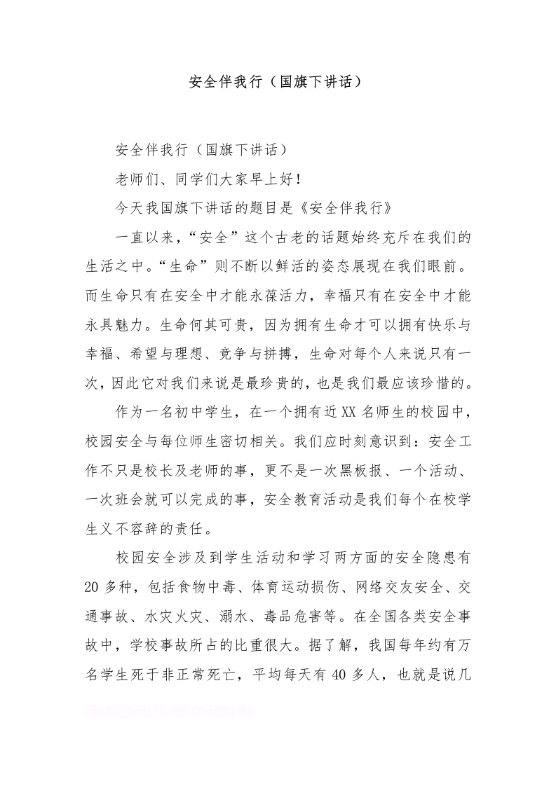 首页主题节日主题活动安全伴我行(国旗下讲话)[推荐]