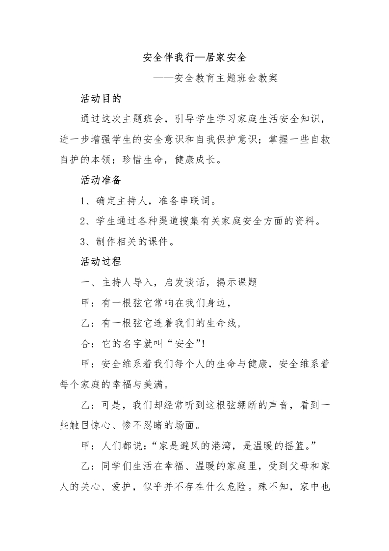 首页主题节日主题活动安全伴我行居家安全(安全教育主题班会)教案