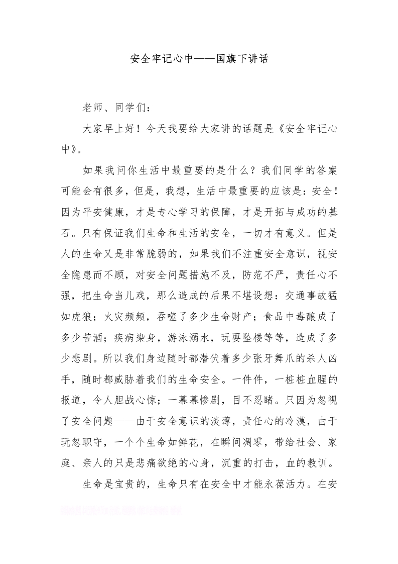 安全牢记心中——国旗下讲话[推荐]