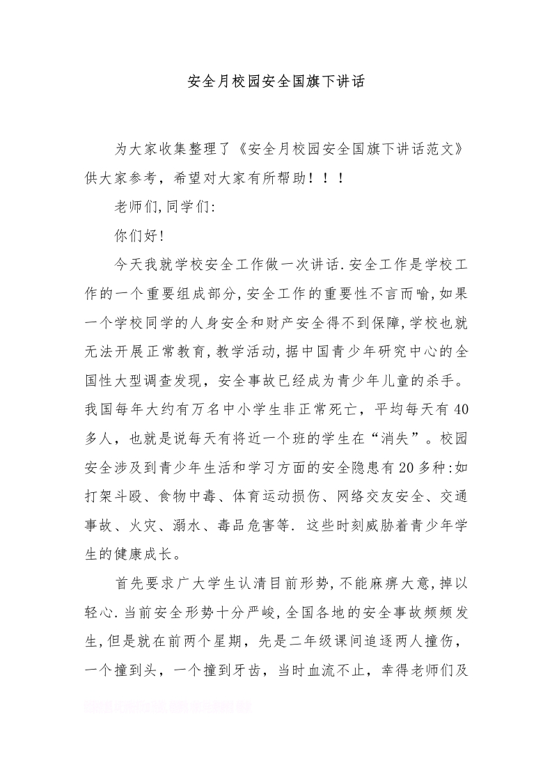 首页主题节日主题活动安全月校园安全国旗下讲话[推荐]