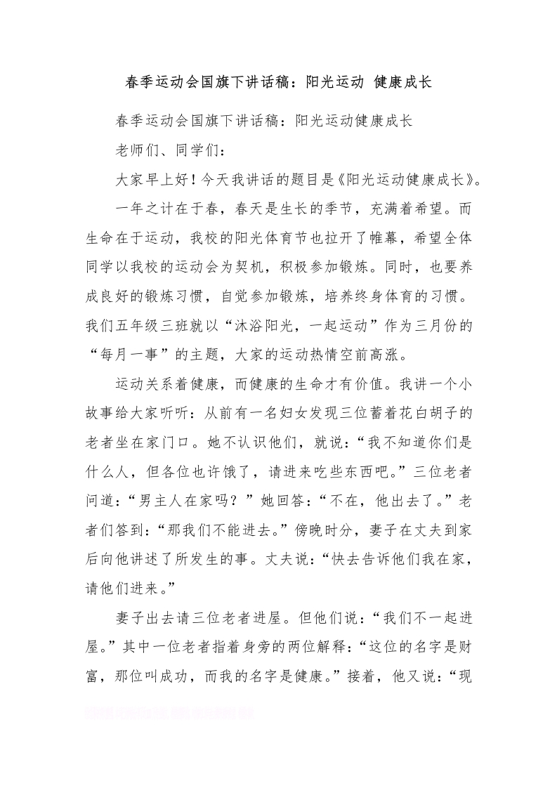 春季运动会国旗下讲话稿:阳光运动 健康成长[推荐]