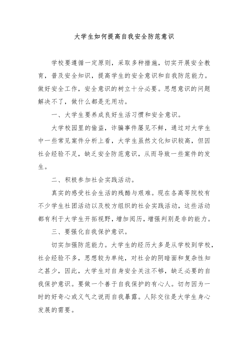 大学生如何提高自我安全防范意识