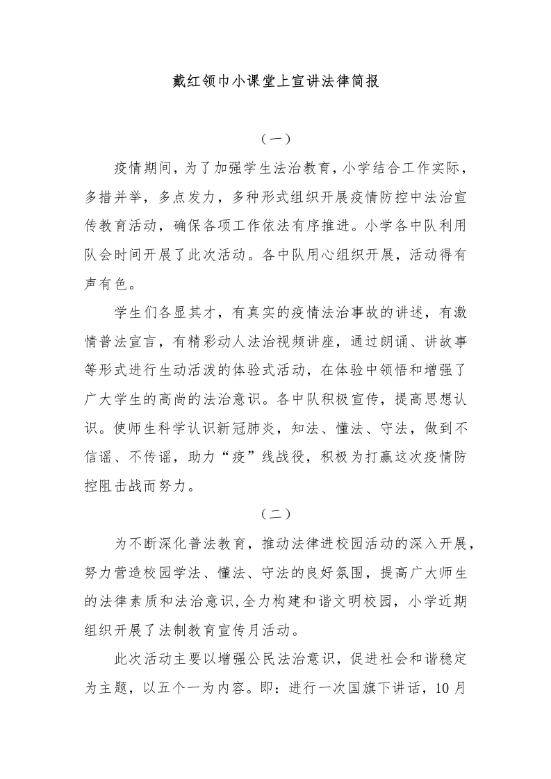首页主题节日主题活动戴红领巾小课堂上宣讲法律简报