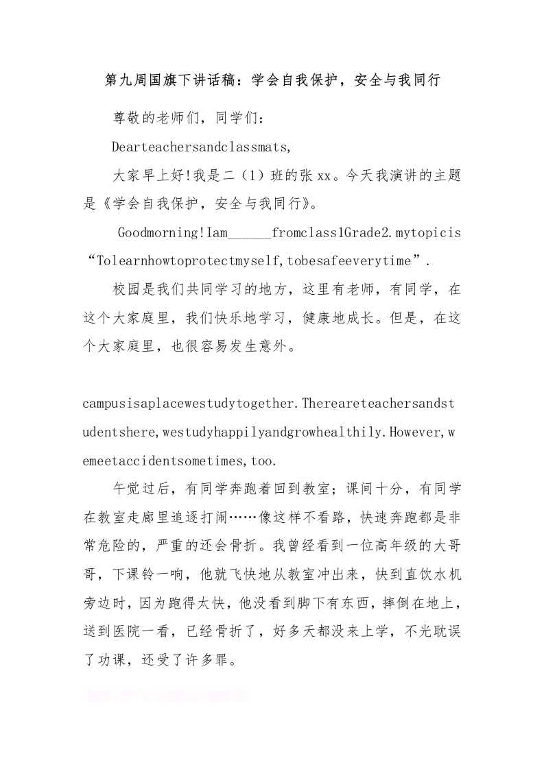 第九周国旗下讲话稿:学会自我保护,安全与我同行[推荐]