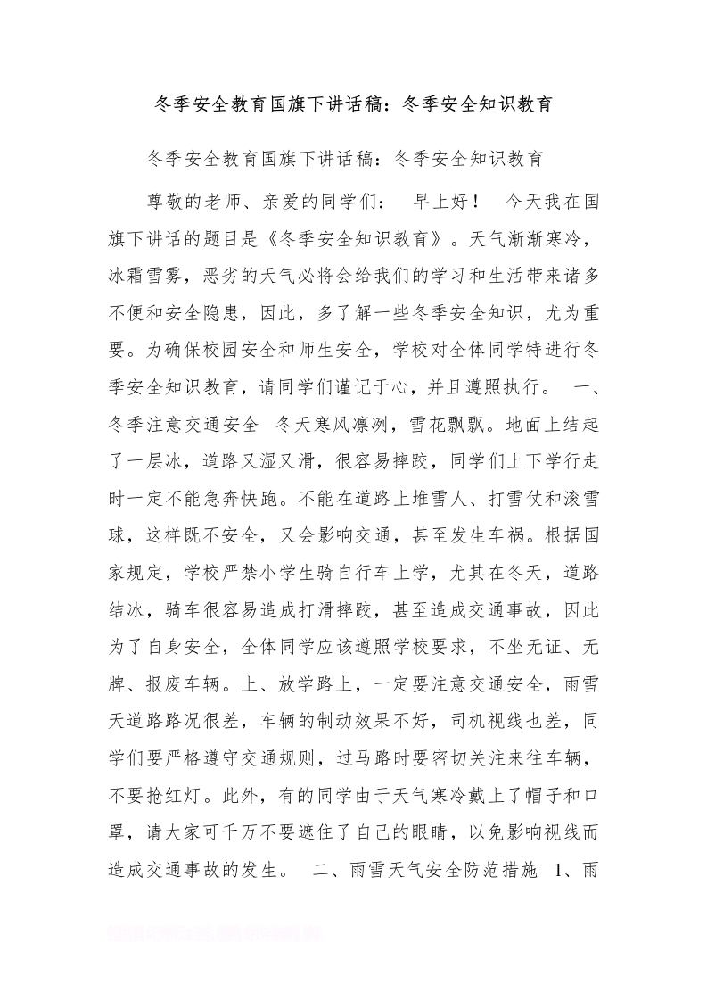 冬季安全教育国旗下讲话稿:冬季安全知识教育.doc[推荐]