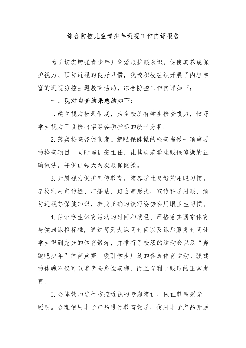 首页主题节日主题活动儿童青少年近视防控工作自评报告