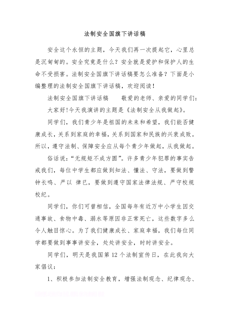 首页主题节日主题活动法制安全国旗下讲话稿[推荐]
