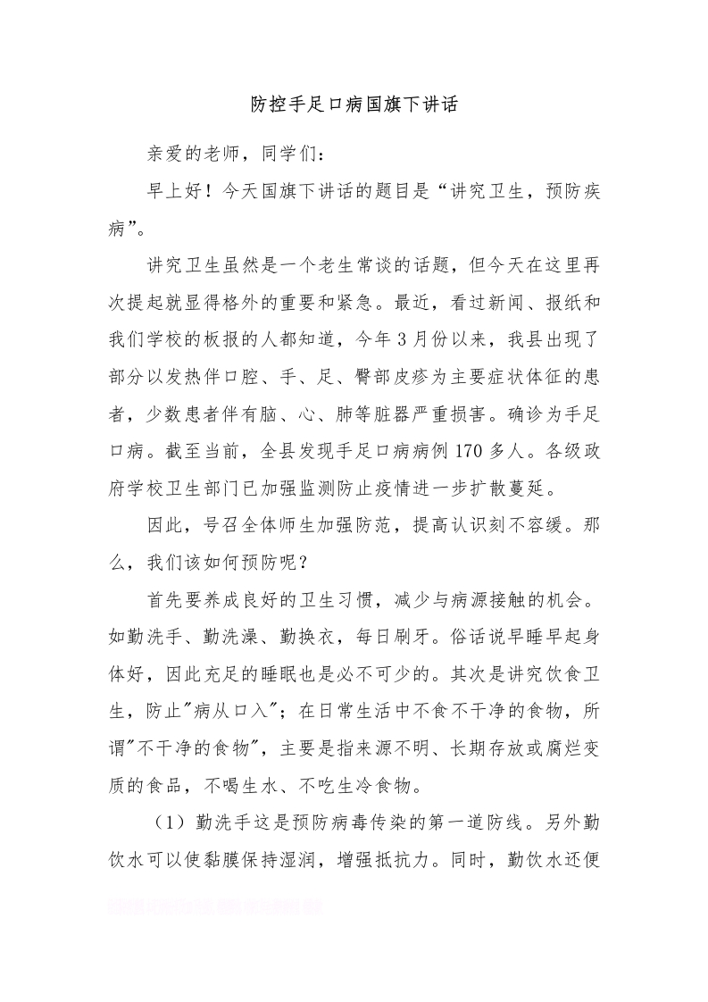 首页主题节日主题活动防控手足口病国旗下讲话[推荐]
