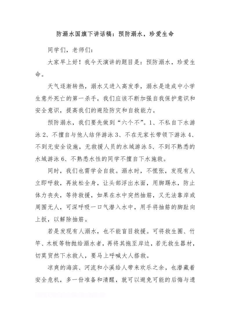 防溺水国旗下讲话稿:预防溺水,珍爱生命[推荐]