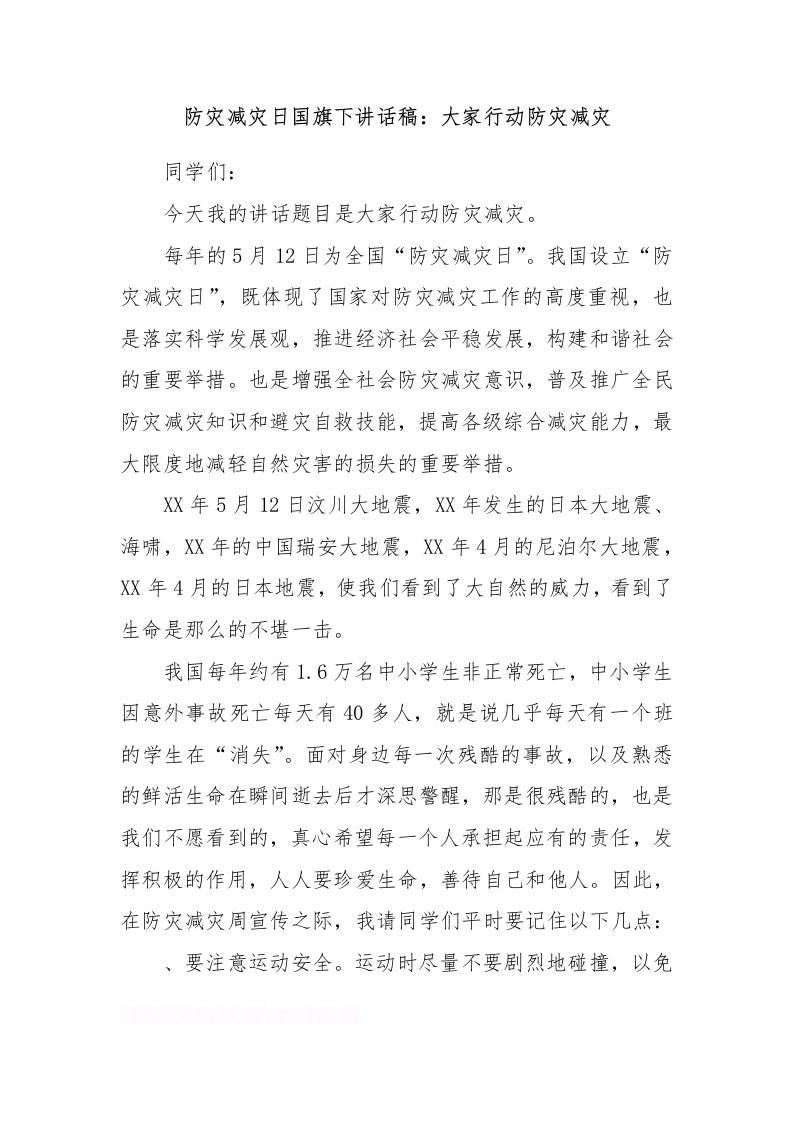 防灾减灾日国旗下讲话稿:大家行动防灾减灾[推荐]
