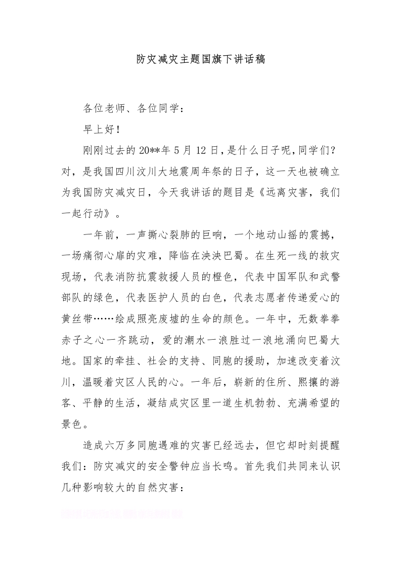 首页主题节日主题活动防灾减灾主题国旗下讲话稿[推荐]