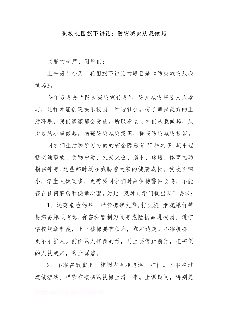 副校长国旗下讲话:防灾减灾从我做起[推荐]