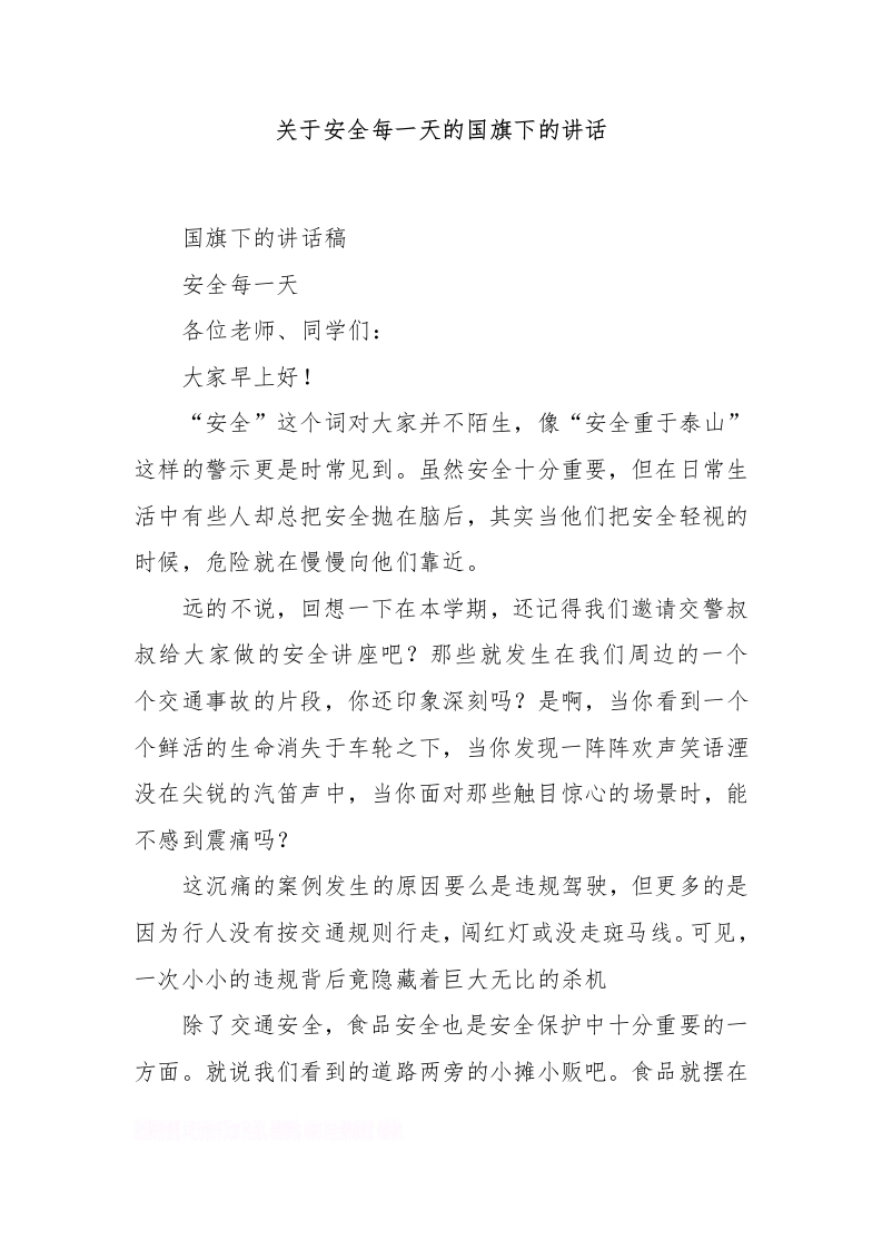 首页主题节日主题活动关于安全每一天的国旗下的讲话[推荐]
