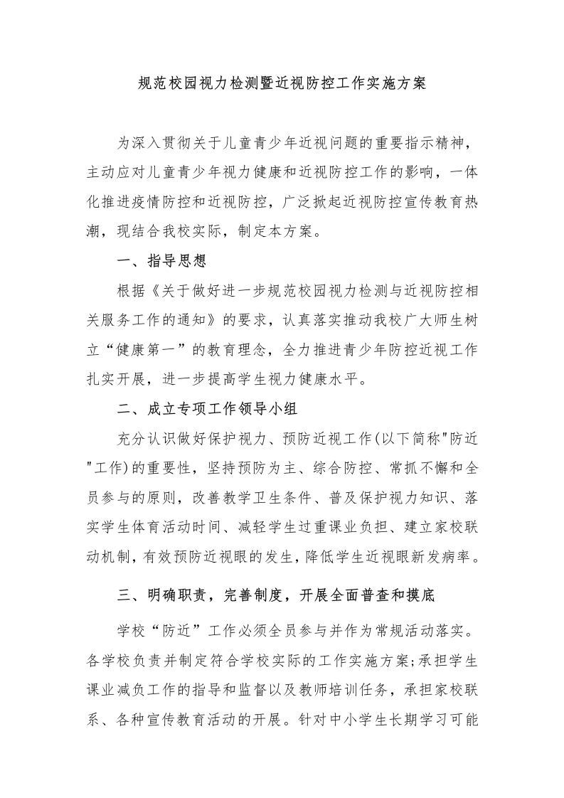 规范校园视力检测与近视防控服务工作实施方案