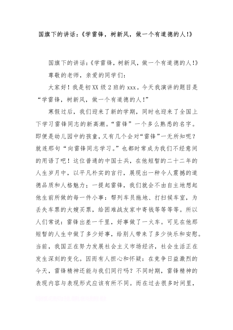 国旗下的讲话:《学雷锋,树新风,做一个有道德的人!》[推荐]