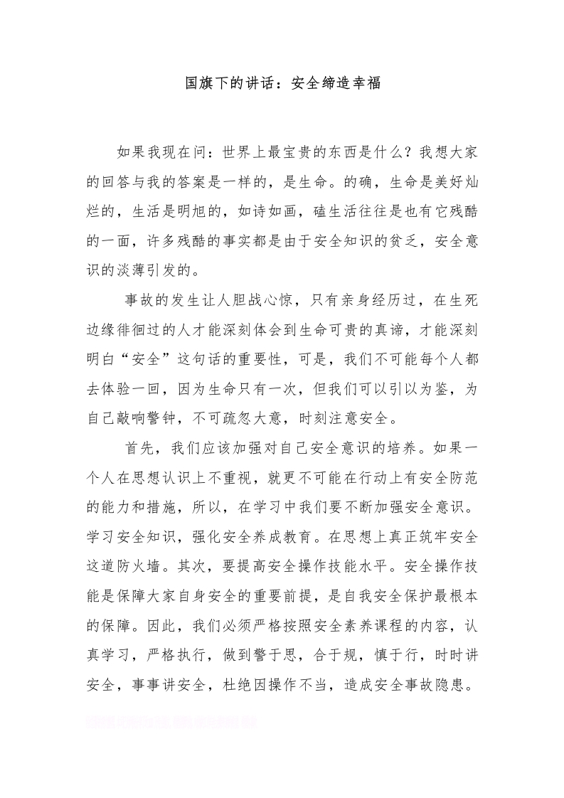 国旗下的讲话:安全缔造幸福[推荐]